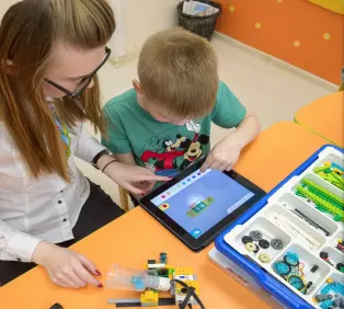 После того, как рабочий образец собран, ребята подключают модель к планшету. Ребенок может сам решить, как и на что будет реагировать робот, а затем создать алгоритм с помощью специальной программы.